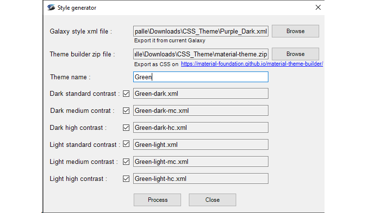 Cette fonction permet de générer une libraire de styles basée sur la définition des couleurs du Material Design (https://m3.material.io/).