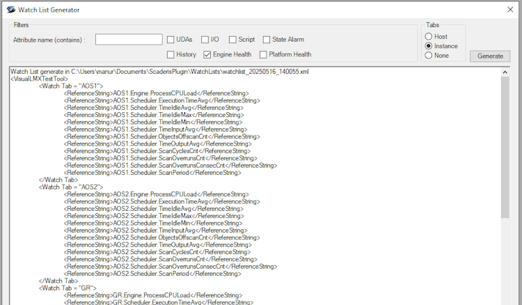 Cette fonction permet de générer des Watch List (fichiers XML) destinées à Object Viewer.