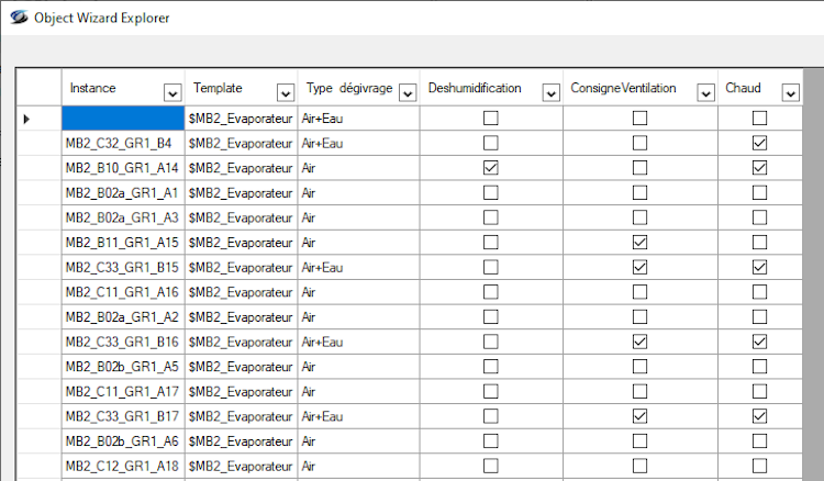 Dans l'IDE, il est impossible d'avoir une vue d'ensemble des options de configuration de l'Object Wizard pour toutes les instances.
