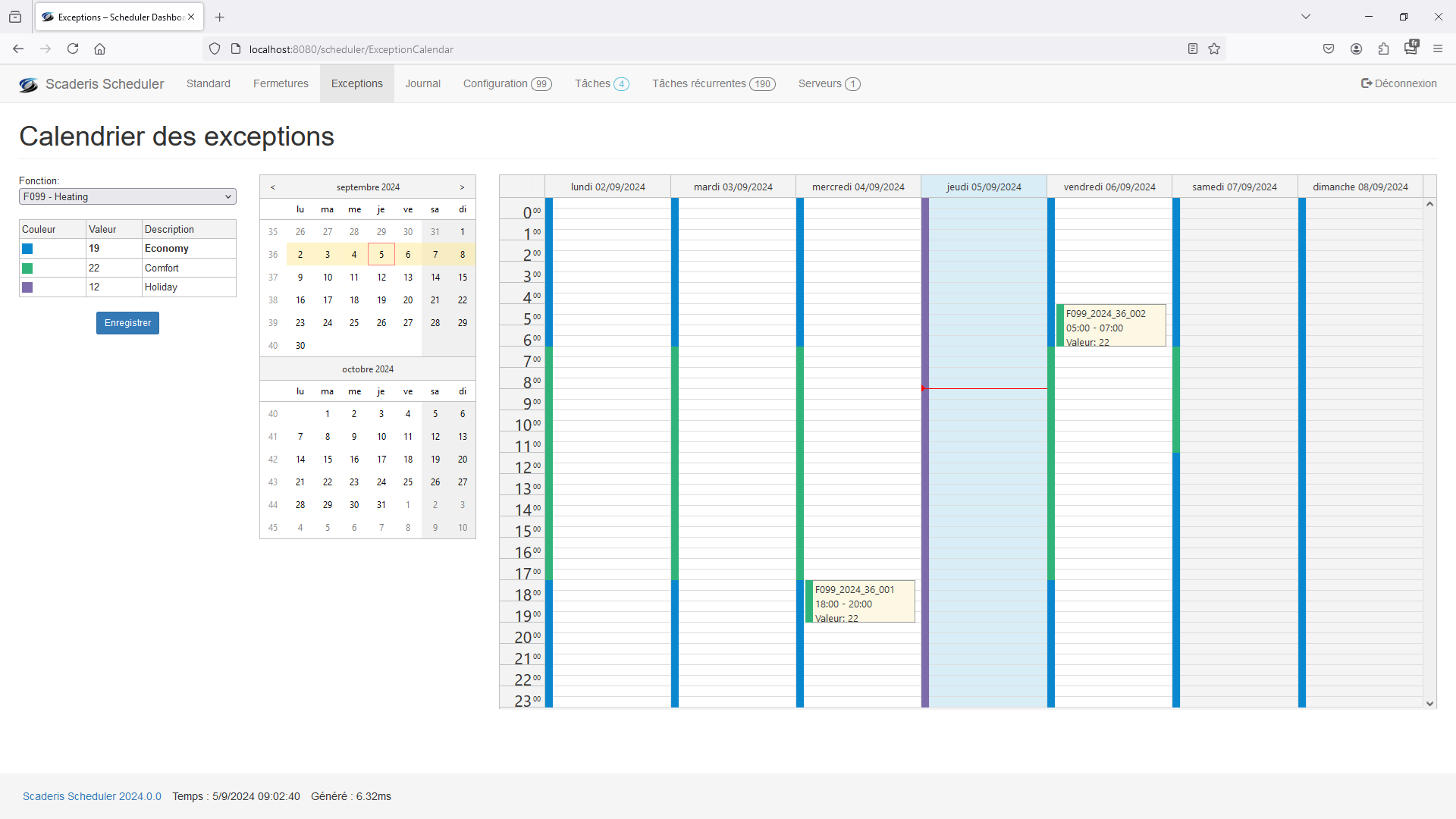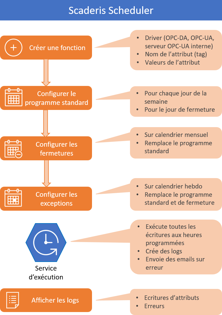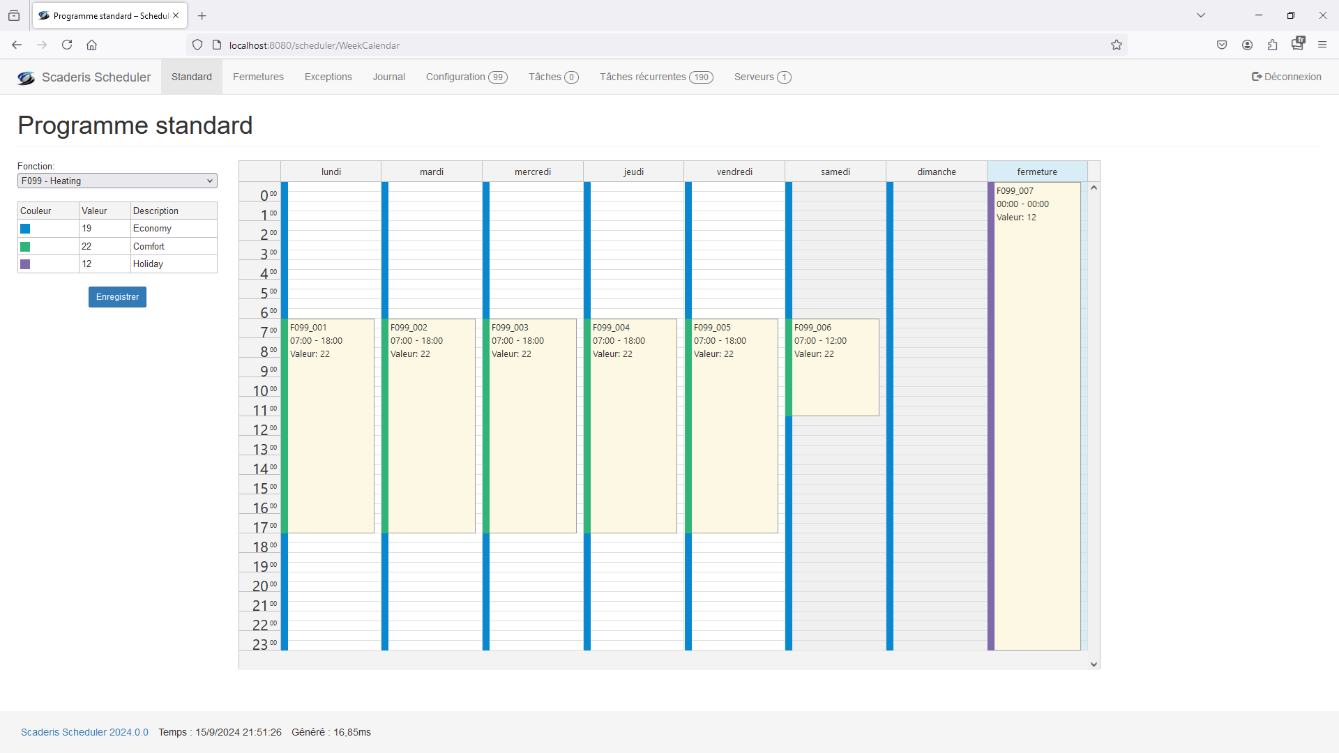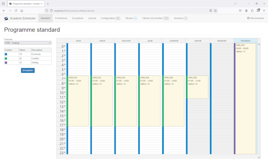 SCADERIS Scheduler est un logiciel de programmation horaire qui permet de piloter des équipements selon des programmes prédéfinis.